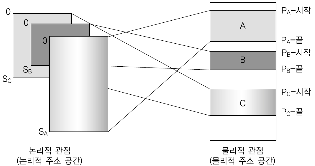 - 하나의 프로세스가 메모리의 여러 영역에 분산되어 적재되는 방식